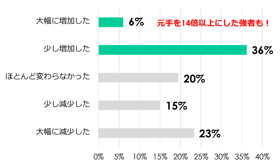 「大幅に増加した」の中には、元手が14倍以上になった人も!