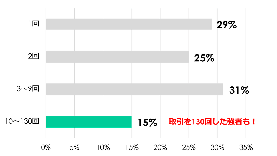 平均1~2回が50%以上を占める中、130回取引した強者も!