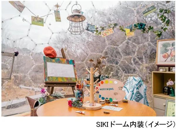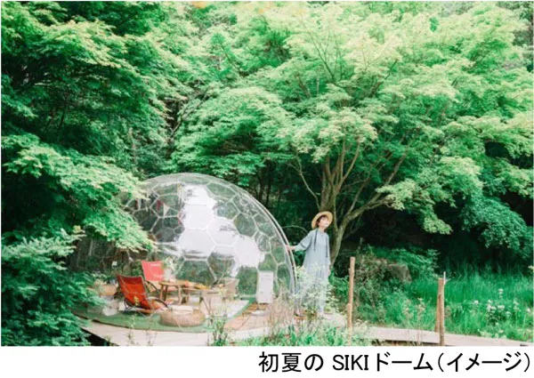 透明ドーム「SIKIドーム」を1日2組限定で貸切利用できます。特製ランチ「森のボタニカルパレットランチ」でオリジナルカナッペを作ったり、