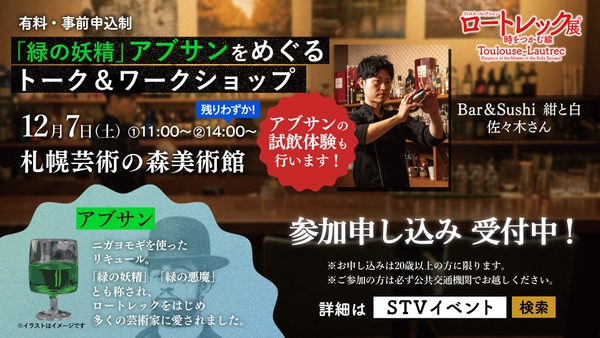 【ロートレック展札幌】12/7(土)ロートレックが愛した"アブサン"トークイベント申込受付中!残りわずか!