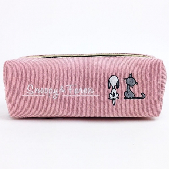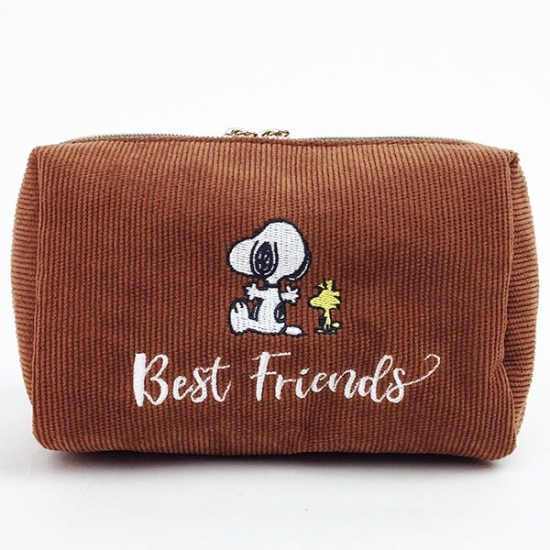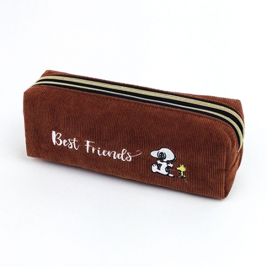 トップはブラウンカラーのペンポーチです。スヌーピーとウッドストックの仲良しコンビのデザイン♪深いブラウンが見るだけであったかさを感じさせてくれますね。