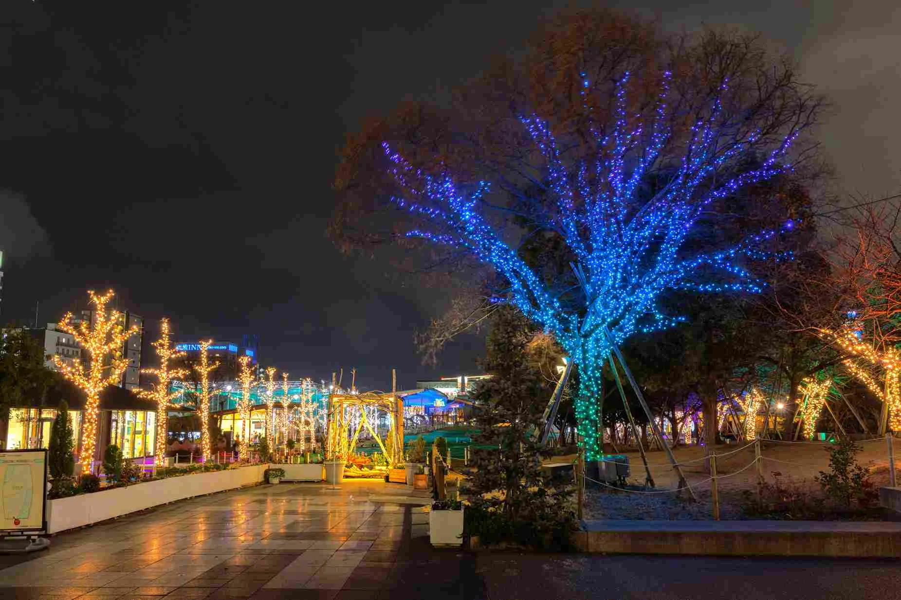 「てんしば」のイルミネーションは、2015年に公園入口のトップライト部分のみでスタートした後、順次点灯範囲を拡大し、夜の園内を明るく照らし続けてきました。
