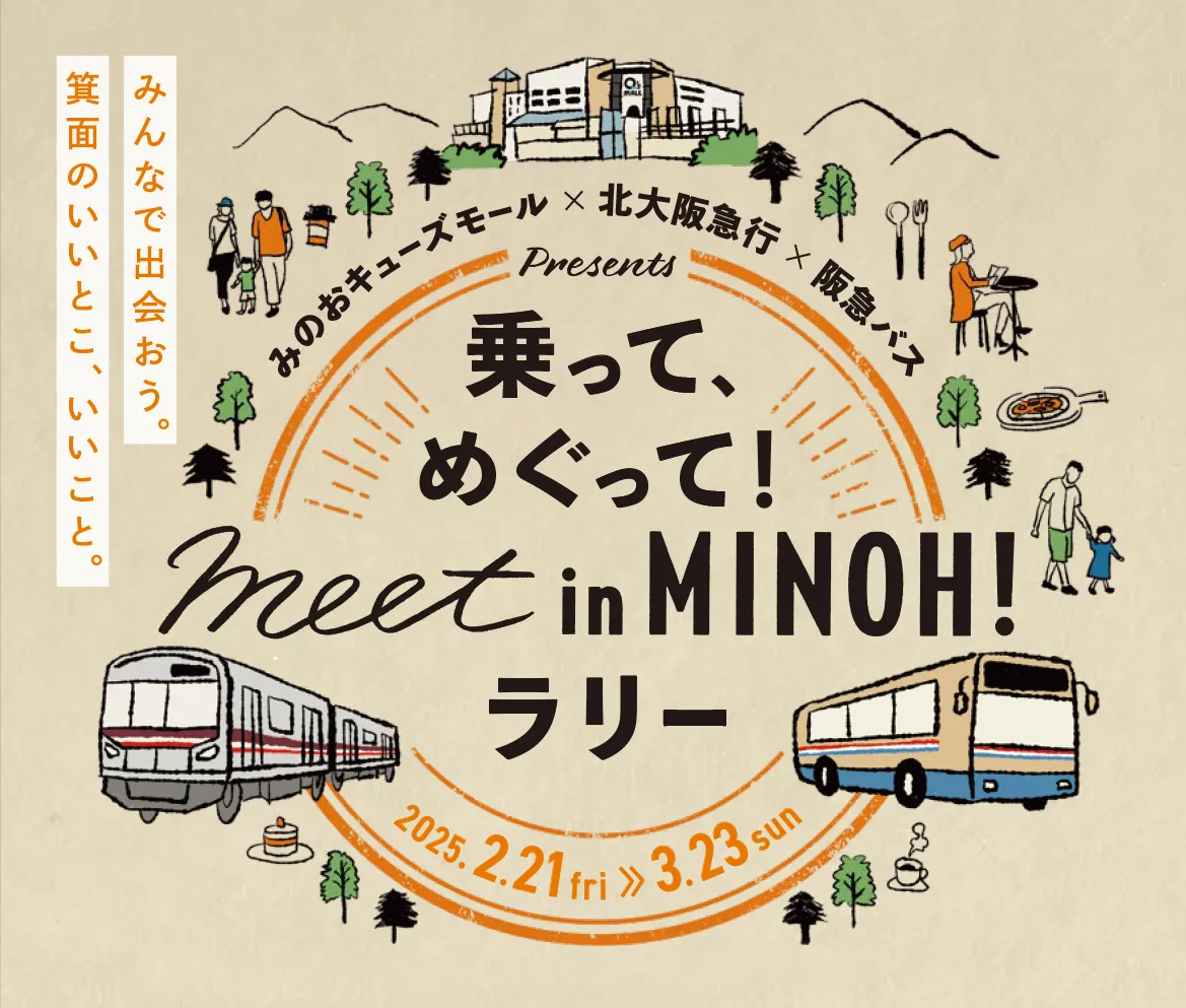 東急不動産SCマネジメント株式会社(本社:東京都渋谷区、代表取締役社長:大久保 次朗)、北大阪急行電鉄株式会社(本社:大阪府豊中市、代表取締役社長:奥野 雅弘)、阪急バス株式会社(本社:大阪府豊中市、代表取締役社長:三田 和司)は、地域の活性化や公共交通機関の利用促進を目的に、2025年2月21日(金)より、「乗って、めぐって!meet in MINOH!ラリー」を開催いたします。