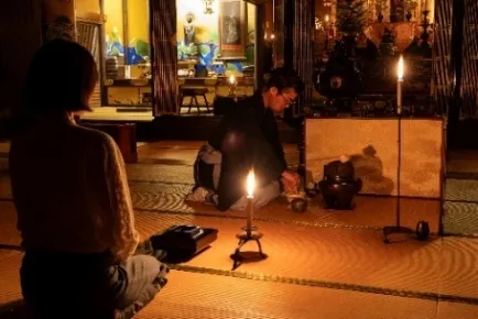 うさぎ屋に宿泊するプランでは、湖に浮かぶ月の明かりを眺めながらお部屋でリラックスタイムを過ごせます。また、「泉慶寺」にて和ろうそくの明かりに身を委ねながら、茶人・中山福太朗氏が呈茶する現代版夜咄体験ができます。