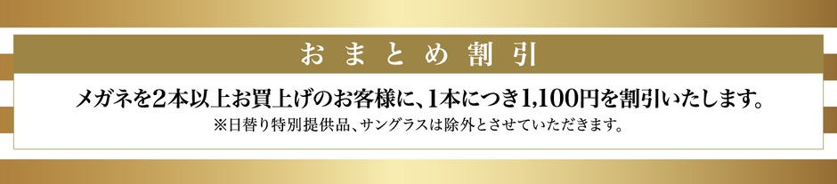 福井・鯖江製フレーム+レンズ付セットを各日50セット限り、お買得価格にてご用意いたします。各日数量限定ですので、お早目のご来店がおすすめです。