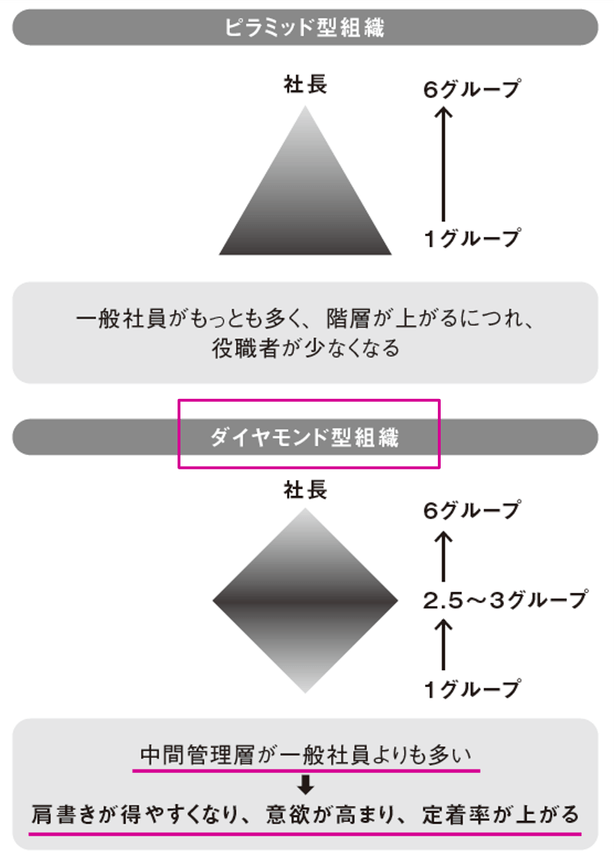 中間管理職が一般社員より多い“ダイヤモンド型組織”で人が辞めない環境に