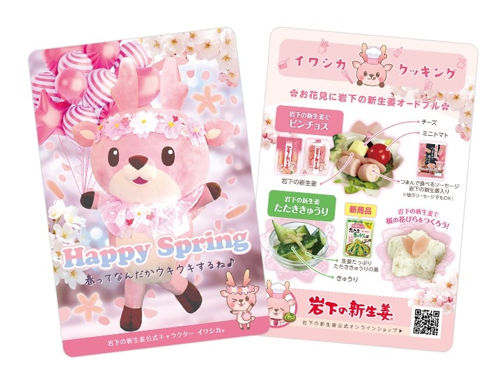 大人気の「イワシカちゃんグリーティング」は、土日祝日に加え、3月20日(木・祝)から4月6日(日)まで平日も毎日開催(休館日除く)。岩下の新生姜のスライスを桜の花びらに見立てたピンクと桜がいっぱいの館内装飾とフォトスポット、プロジェクションマッピング、カフェの期間限定メニューなどを展開します。