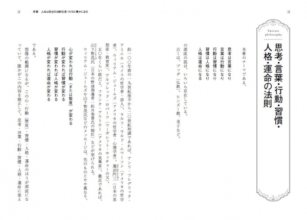 本書では、思考・言葉・行動・習慣・人格・運命のサイクルを順に考察していき、自分を磨き続けるための人生哲学を盛り込んだ、骨太な一冊です。