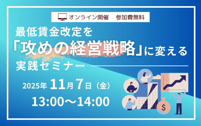 みらいコンサルティンググループ(本社:東京都中央区、代表:久保 光雄 岡⽥ 烈司)は、2025年11月7日にセミナー『最低賃金改定を「攻めの経営戦略」に変える実践セミナー』をWEBにて開催します。
