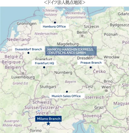 阪急阪神エクスプレス(本社:大阪市北区 代表取締役社長:谷村 和宏)は、イタリア・ミラノ駐在員事務所に代わり、ドイツ法人であるHANKYU HANSHIN EXPRESS (DEUTSCHLAND)GMBH(本社:フランクフルト)のミラノ支店として、新たに2月1日より営業を開始しました。