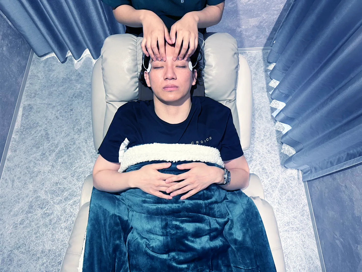 これらをバラバラに行うと1時間以上かかりますが、それらをほぼ同時に行う独自技術により15分で一気に行うことができます。そのため、短時間でスッキリとした視界を手に入れることができます。凝り固まった目周りの筋肉を低周波・揉みほぐしでリリースした上で、温罨法・冷罨法を組み合わせた施術はサウナと同様の原理で、血管の収縮に伴い「目がととのう」感覚を味わっていただけます。