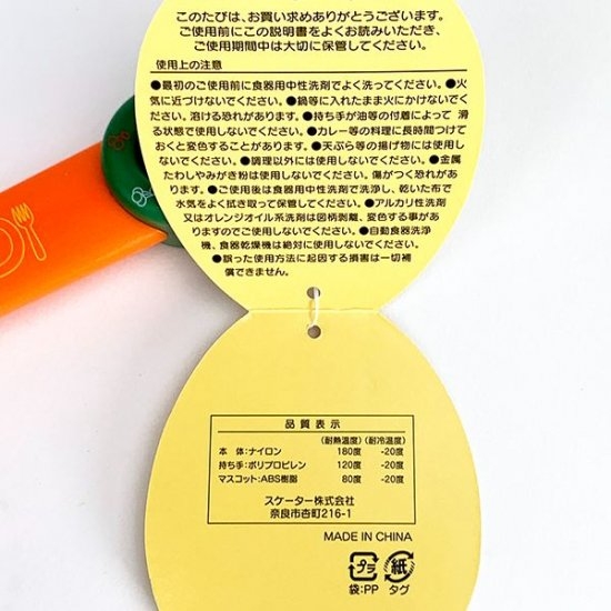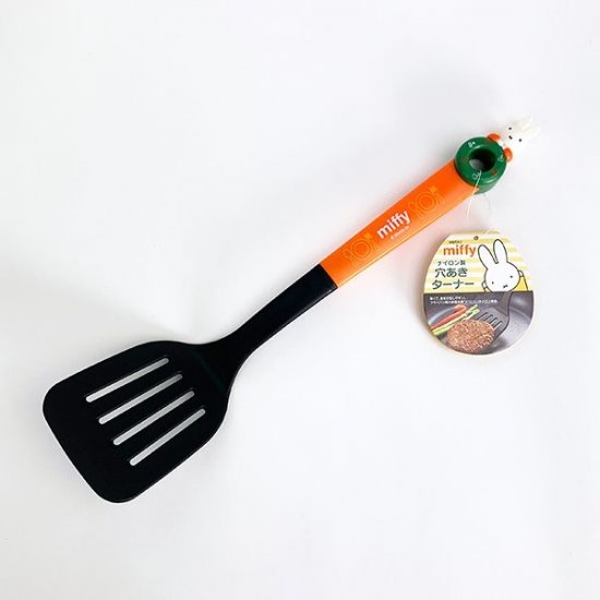 持ち手の部分には、ミッフィーのロゴと食器のイラストが入っているのもさりげなくて良いですね。黒とオレンジのコントラストも素敵です♪
