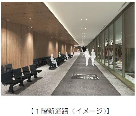 ・鉄道・バス情報をはじめとする案内機能、待合スペースやトイレ、新通路とバスターミナルを結ぶ上下エスカレーターおよびバリアフリー対応のエレベーターを整備