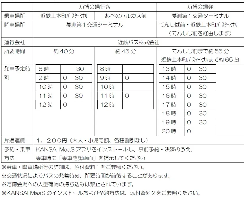また、近鉄バス株式会社は、大阪・関西万博の開催期間中に運行する大阪上本町駅および大阪阿部野橋駅と大阪・関西万博会場を結ぶシャトルバス(以下、「万博シャトルバス」)の予約を3月1日(土)から開始します。多くのお客様のご利用をお待ちしております。
