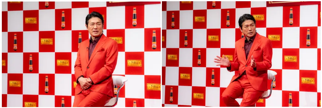 「党首」「伝統派」「革新派」の3役を演じた新CMについて、撮影時のエピソードについて聞かれると「3役あるので3回分撮影したのですが、それぞれが順番に前に入っていくシーンのタイミングが難しかったです。あとはキャラクターの演じ分けにも苦労しました。また、常にオイスターソースのおいしそうな香りがしていて『今日は帰ったら中華だな』と思いながら撮影をしていました(笑)」と、にこやかに語りました。