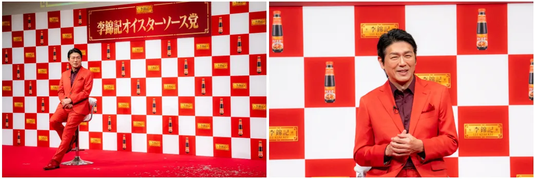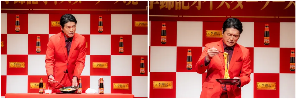 このたび、李錦記オイスターソースの魅力を1人でも多くの方にお届けするために、「李錦記オイスターソース党」を立ち上げました。その党首に、俳優の高橋克典さんが就任。イベントには高橋さんが、1人3役を務めた新CMの党首と同じ真っ赤なスーツ姿で登場。CMをお披露目したのち、トークセッションでは普段の料理事情や、昨年12月に還暦を迎えられての今後の目標などについて語りました。李錦記オイスターソースを使ったおすすめレシピを調理するコーナーでは、丁寧な解説を交えて、実演・実食いただきました。