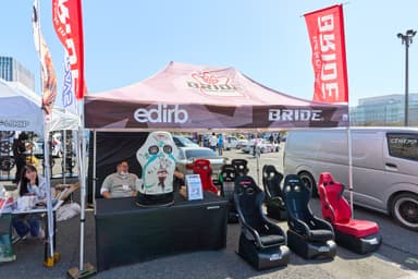痛車制作SHOPのデモ車展示やホイール、シートといったカー用品、ステッカー・グッズ販売。その他、アパレルや関連グッズなどの即売会も開催。