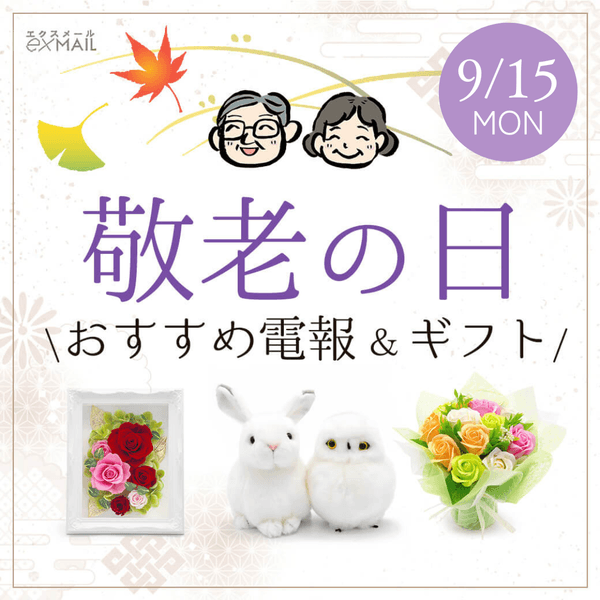 こうした特別な時間の演出を、電報屋のエクスメールがサポートします。敬老の日には、”言葉”とギフトを組み合わせた電報ギフトで、大切な方へ思いを伝えてみませんか。