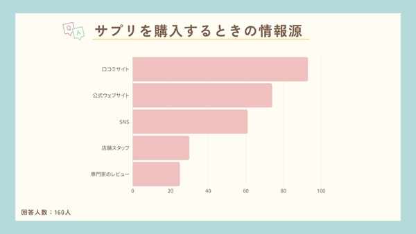 実際にサプリを購入する際の情報源としては口コミサイトが最も多く、58.1%の人が参考にすると回答しました。