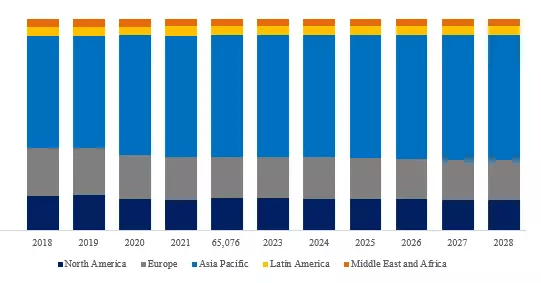 消費量では、アジア太平洋地域が58.0%の市場シェアで最大の消費者市場であり、次いで欧州が19.6%、北米が15.3%となっている。2023年から2029年までの年平均成長率は約4.38%で、中国が最も急成長すると予想される。