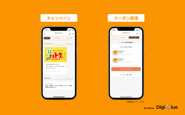 「岡⼭⼀番街」「さんすて岡⼭」では、これまでの店頭販促キャンペーンやクーポンの配布を主に紙や対⾯接客で⾏なってまいりました。今後、これらをLINEミニアプリ上で展開することによって、お客さまの利便性向上・キャンペーン参加者の増加と同時に、本部およびテナント各社さまに発⽣しておりました集計・管理業務のデジタル化を実現してまいります。