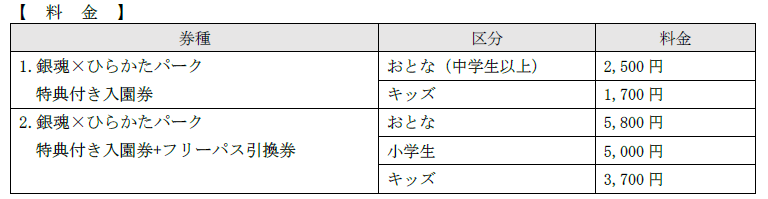 料金はひらかたパーク公式WEBサイトをご確認ください。なお特典はついておりません。