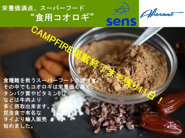CAMPFIREで支援募集中の「食用コオロギ製品」の掲載終了まで残り11日となりました。12月16日現在、目標金額の2%のご支援をいただいておりますが、まだまだ目標金額に遠く及びません。