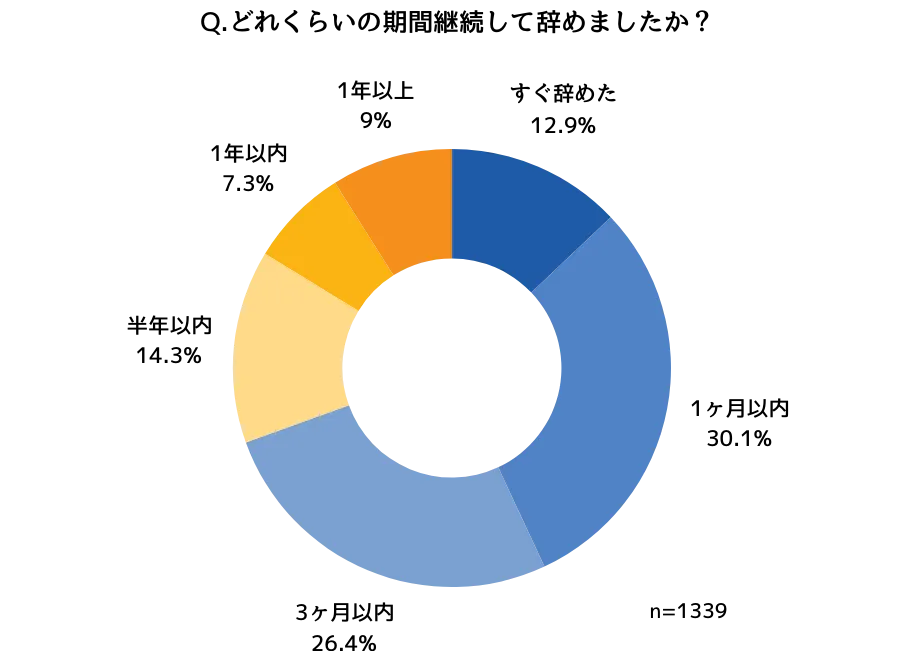 ● 辞めてしまった1,339名のうち69.4%が3ヶ月以内に辞めている