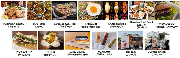 西宮を中心に活動する13台のキッチンカーが海沿いに集まり、多彩な料理を提供します。