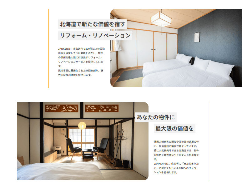 – JANKENの企画運営、北海道エリアでの民泊投資プロジェクト支援