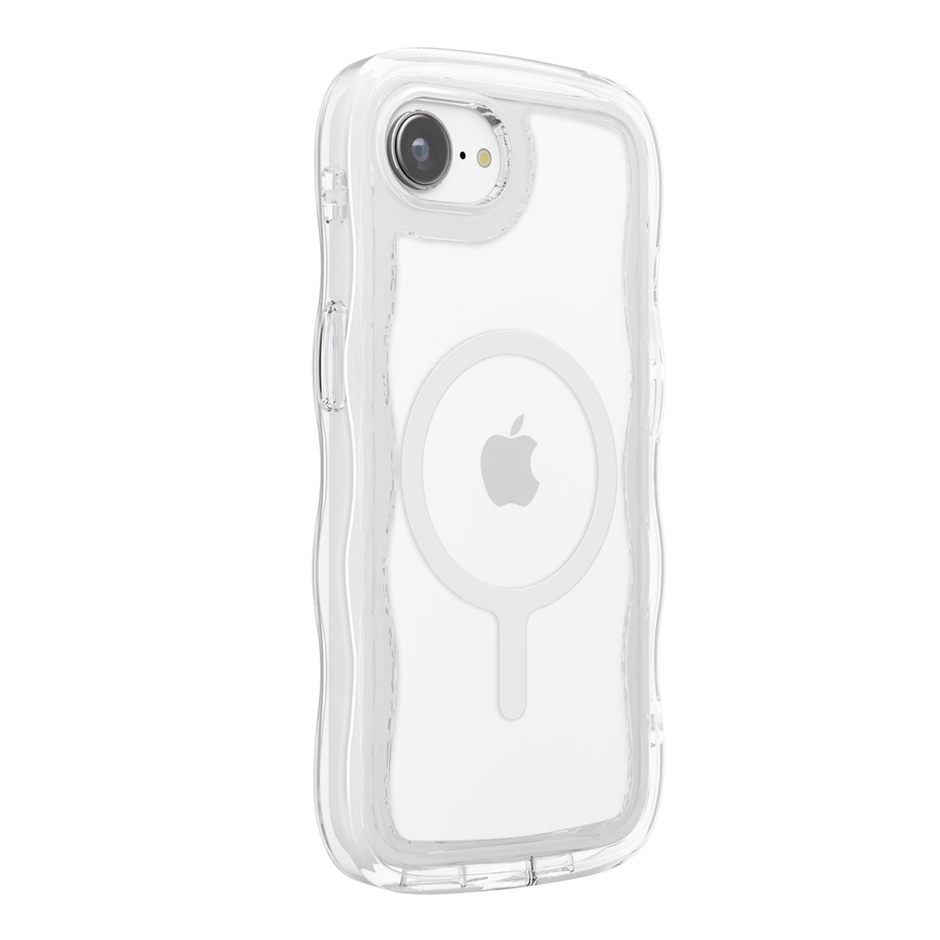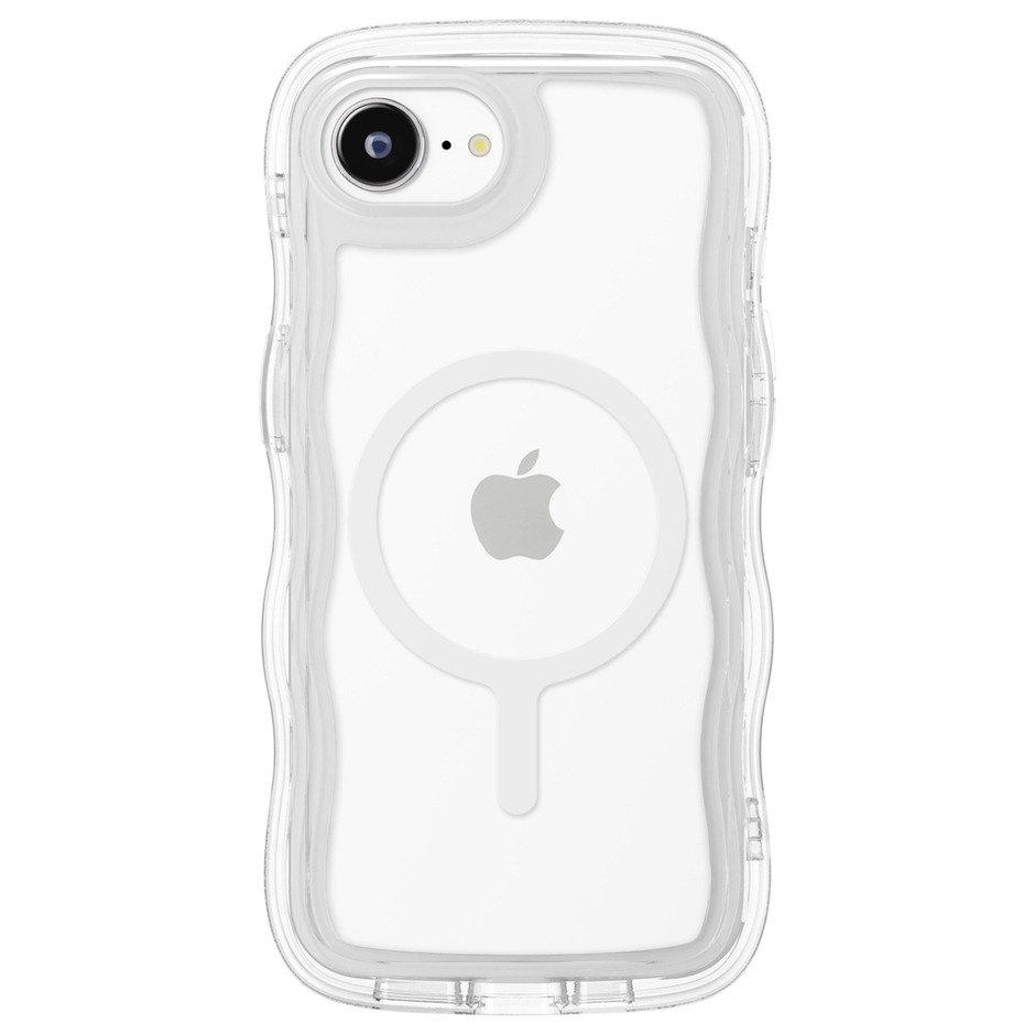 やわらかな波打つデザインが可愛らしい各種MagSafeアクセサリーに対応したiPhone 16e 用 ウェーブ エアクッションケースです。側面のTPU素材が2層構造で内側は硬質なTPU素材でiPhone本体をしっかりとホールド、外側は柔らかなTPU素材で手にフィットしやすく、外部の衝撃からiPhone本体をしっかり護ります。背面は、薄くて耐久性に優れたポリカーボネイトを採用し、iPhone本来のデザインを活かすクリアタイプ。シールや写真を入れて自分好みにカスタマイズすることが出来ます。メタルリング搭載でMagSafeアクセサリーをピタッと簡単装着。米国国防総省の軍用規格(MIL-STD-810G)の落下と振動試験をクリアしたタフ設計。お手持ちのストラップをつけて落下を防げるストラップホール付き。