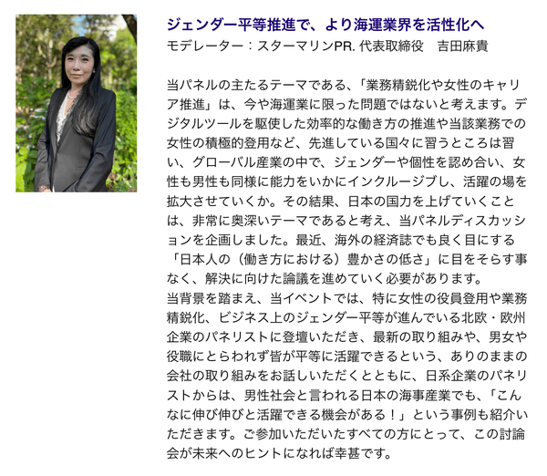 【世界の海事産業で活躍する女性パネリストが「未来へのヒント」を呈します!】
