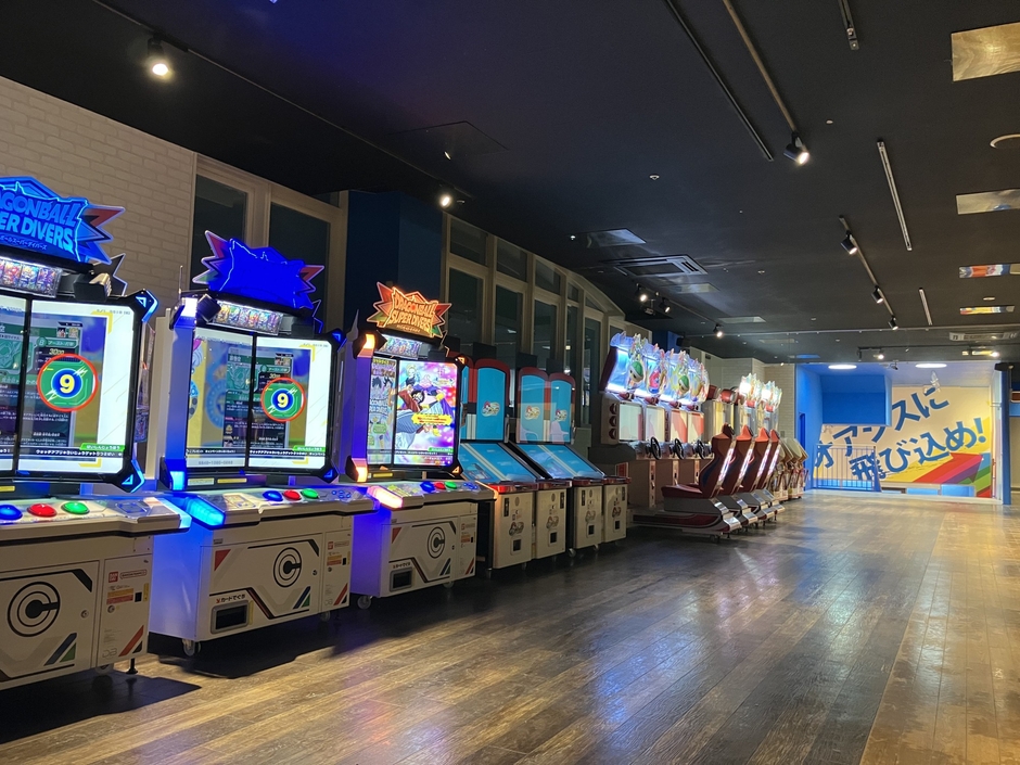 3階:プリントシール機や体感スポーツ、音楽ゲーム、大型ビデオゲーム、キッズカード、ビリヤード、ダーツ、卓球など。