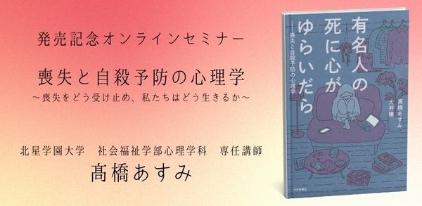 【今夜開催】オンラインセミナー『有名人の死に心がゆらいだら――喪失と自殺予防の心理学』発売記念オンラインセミナー〜パラソーシャルなつながりと喪失へのアプローチを開催します