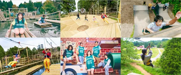 広大な丘陵地に新設する「Mt.Kingdom」は、お城をテーマとした複合型アスレチックやドラゴンの体内を駆け巡るネットアスレチックを中心に、1つ1つのアスレチックがRPGに登場する試練のように感じられる計31ポイントの新感覚アスレチックです。従来のアスレチックのイメージを超えた、冒険心くすぐるビジュアルはまるで子どもの頃に憧れたRPGの世界かのようです。待ち受ける試練を1つずつクリアして回るアスレチック体験は、達成感・満足度の高さが魅力です。様々なことにチャレンジし続けて結成15周年を迎えたフィッシャーズと、アスレチックの魅力を追求し続けるグリーニアによる新たな冒険にご期待下さい。