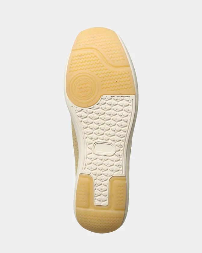 3. かかとから土踏まず周辺をカップ状にサポートする形状のインソールを使用。かかと部分にはさらにラテックススポンジを追加しているため、うす底なのに、むにっとやわらかな気持ちよさを感じることができます。また、約1cmの傾斜をプラスすることで、蹴り出しやすく、うす底スニーカーは疲れやすいという印象を覆す仕上がりです。