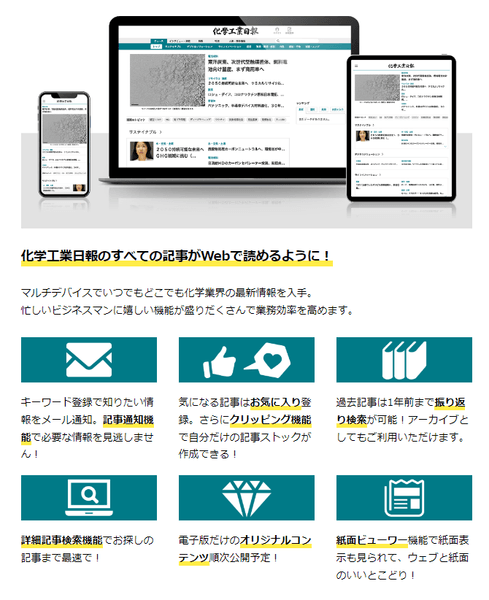 【無料キャンペーン実施中】『化学工業日報 電子版』を試すなら今!