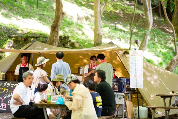 会場となる京都の里山・八瀬は、京都・出町柳から大原を経て福井・若狭へと通じる鯖街道(若狭街道)沿いにあり、自然とのつながりを体感できる地域です。「やせのそとあそび」では、1000年後の食卓のために、本質的で豊かな暮らしの大切さをみなさんと一緒に考えていきます。瑞々しい新緑に囲まれた八瀬でお気に入りのチェアやシートを持参して、木遊び体験、鯖街道にちなんだイベント限定メニューなどを楽しみながら、一日中のんびりとお過ごしください。