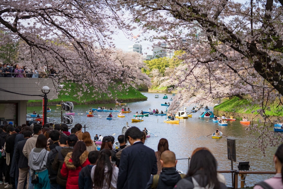 例年3月下旬から4月上旬に10日間程度行われる全長約700m・さくらの名所「千鳥ヶ淵緑道」の夜桜ライトアップ期間中は、千鳥ヶ淵ボート場も夜間まで営業を延長し、訪れる人々はお濠の水上から、この魔法のような景色を楽しむことができます。