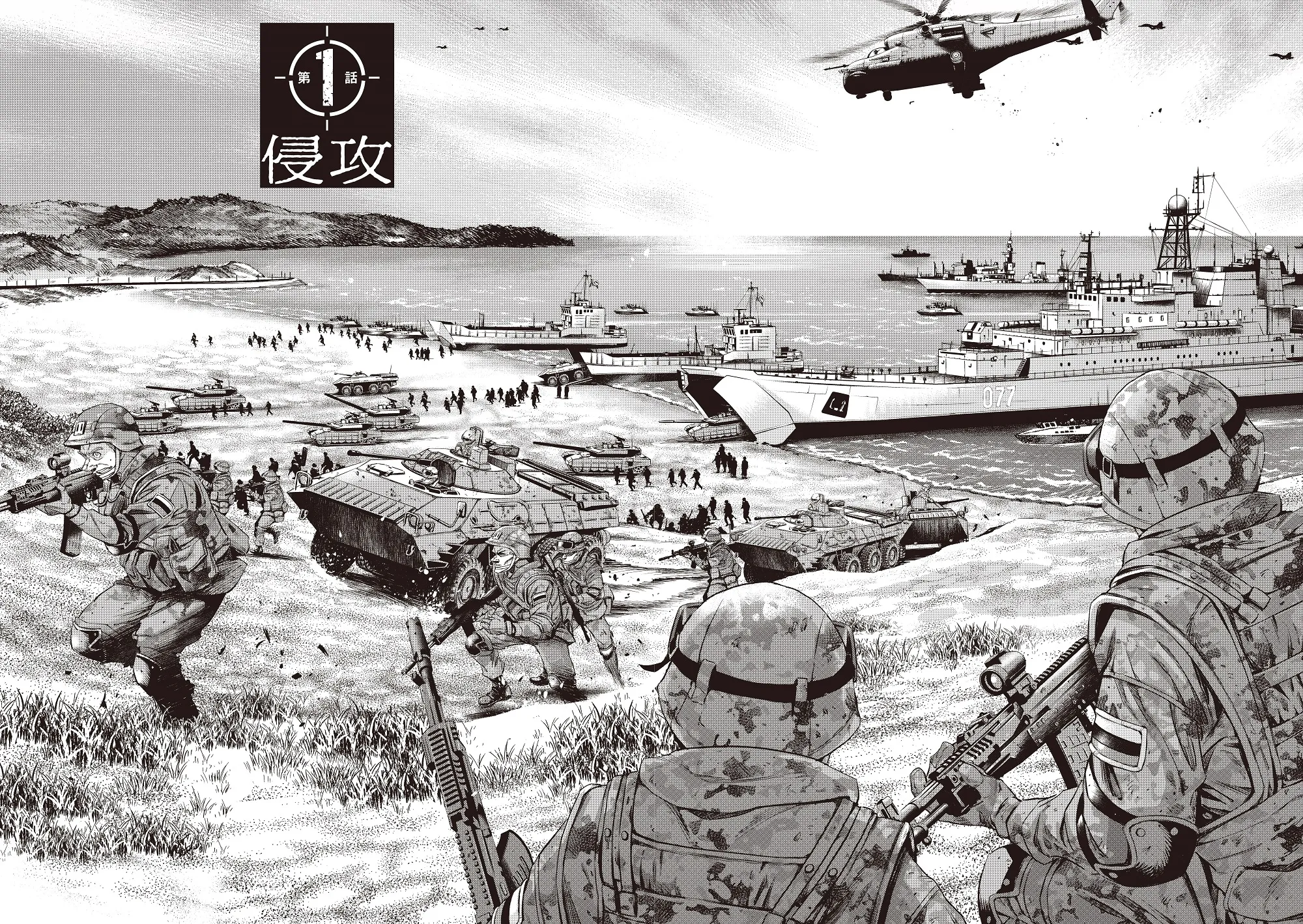 ──宣戦布告のないまま新千歳空港をはじめ重要施設をミサイル攻撃した後、ロシア軍は道北と道東の二方面から北海道に上陸してきた。道内への侵攻をうかがう敵軍に対し、陸上自衛隊は釧路に展開する第27戦闘団を中心に防衛線を固め、迎撃態勢を整えようとしていた。
