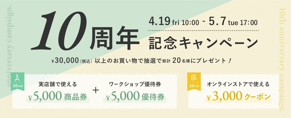 2024年5月7日まで、実店舗10周年記念のプレゼントキャンペーンも開催中です!