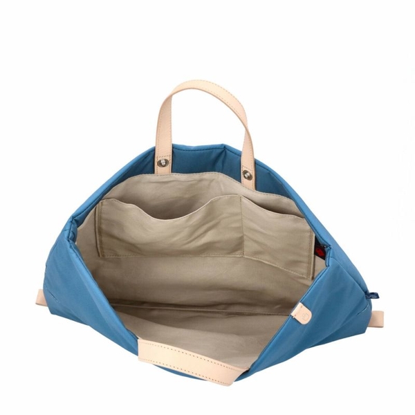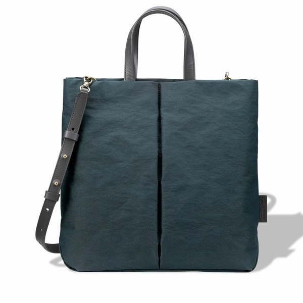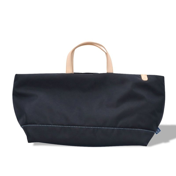 個性的な形は意外な収納上手。「Atelier nuu(アトリエ ヌウ)」の定番シリーズ「snap vegi(スナップべジ)」の漁網再生ナイロンバージョンです。横長の手提げトートバッグは、水筒、ペットボトル、折りたたみ傘、長財布等をスッキリと収納できる。必要なときに底のホックを開放するとマチが13㎝広がり、お弁当箱が収まる仕様。用途に合わせて2STYLE使い分けて活用できる。ハンドルのヌメ革は経年変化をお楽しみいただけます。