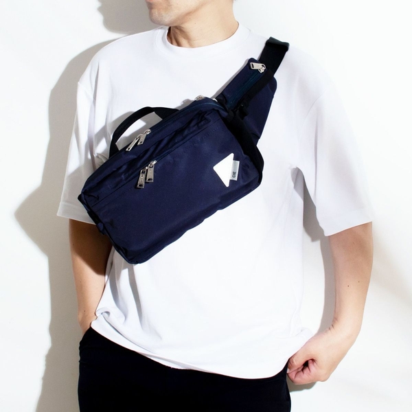 コンパクトなバッグに機能が凝縮。あると嬉しいポケットの配置等、周到に計算されたこだわりが詰まっています。本体生地はテントやボートカバー等にも使われているナイロン「Weather Max®」を使用。軽量で引き裂き強度が高く、色褪せにくいためアウトドアやマリン用途でも使用されている素材です。攻めたアイテムが次々と登場するブランド「CIE(シー)」だが、このバッグは2層に分かれたボディバッグ機能に加え、マーケットバッグと呼ぶ所謂「エコバッグ」が内部に装備され、取り出して使用できます。