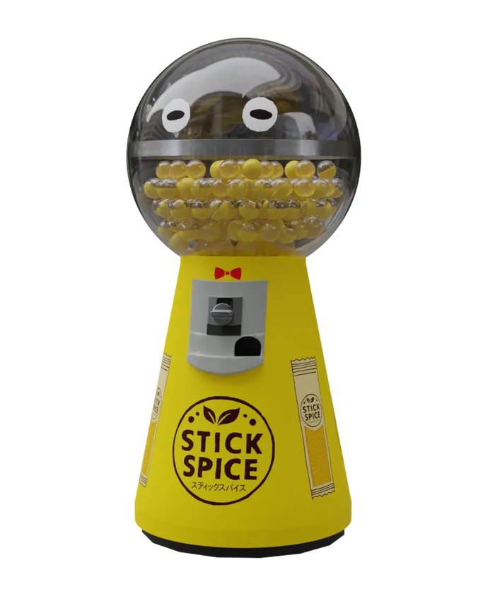 「スティックスパイス」全18種類のうち、いずれか1つとレシピリーフレットがセットでもらえる無料の巨大スパイスガチャを設置します。「当たり」を引いた方には、「スティックスパイス」18種類をすべてセットにしてプレゼントします。巨大スパイスガチャは、高さ190cmに及ぶ巨大サイズ。デザインはエスビー食品が販売するスパイス「SPICE&HERBシリーズ」のキャラクターを再現しました。