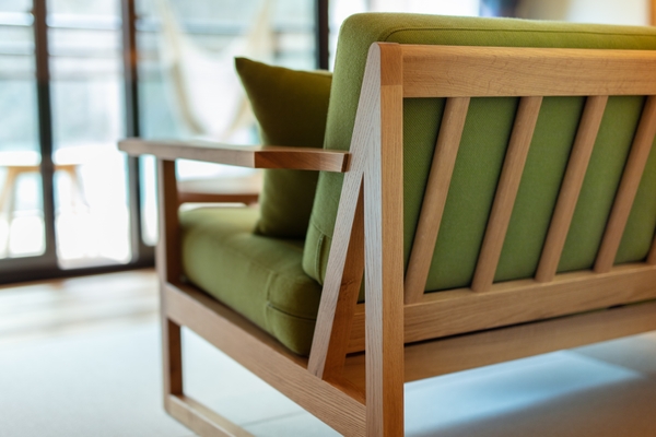 シンプルで上質な家具たちは仙台秋保の手づくり家具「クラスコファニチャー」が手掛け、地元のサクラ無垢材を使い地元の若手職人の手しごとによって作り上げた家具は手にしっくり馴染む、やわらかい触りごこち。滞在の時間が、よりたのしく、豊かなものになるよう職人が丹精込めて磨き上げた。