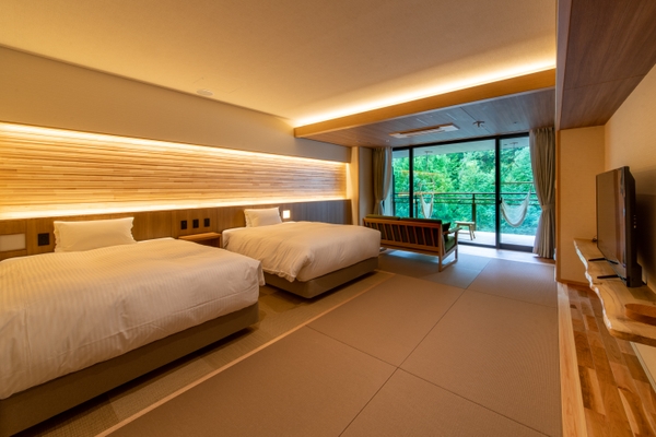 「山と呼吸をあわせる」コンセプトルーム「【里山フロント】ハンモックテラス・プレミアツイン」