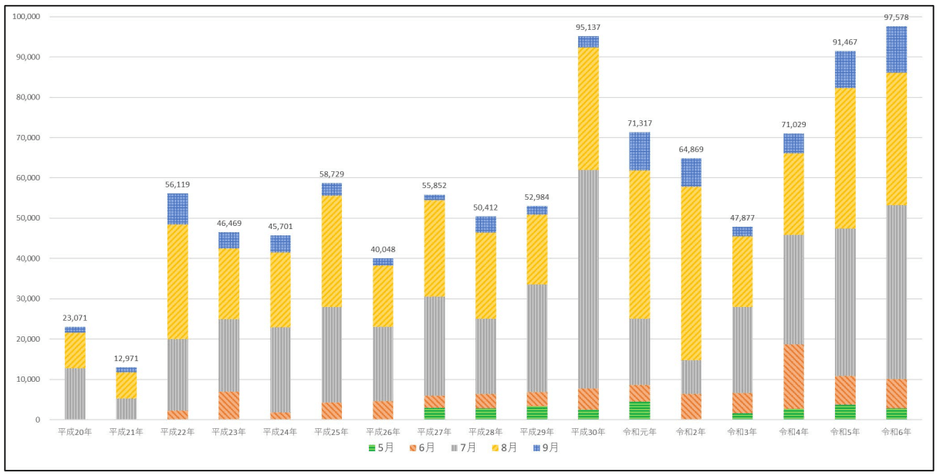 ●令和6年(5月~9月)の熱中症による救急搬送状況