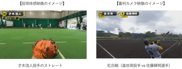 「審判カメラ映像」では、入団以来4年連続二桁本塁打を記録した佐藤輝明選手の本塁打シーンなど、阪神タイガースの紅白戦の様子を体感いただけます。
