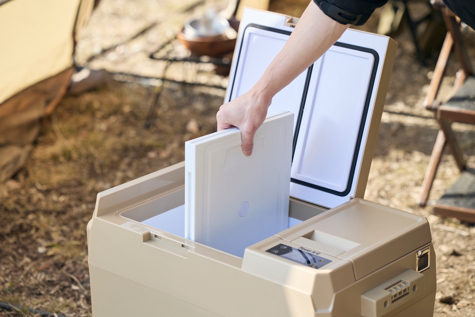 ICEBERG 29Lの冷却システムは、家庭用冷蔵庫と同じコンプレッサー式を採用。最大-20℃まで冷却可能、さらに、20℃前後の温度環境の場合、約45分で片方の庫内を20℃から-20℃に冷却できます。そのため、アウトドアや車中泊でも、好きな食べ物や飲み物を冷凍冷蔵することができます。