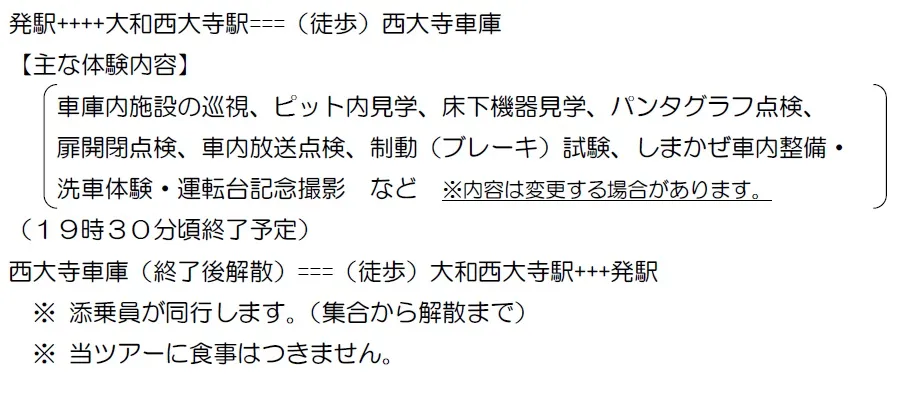 ◆ツアー名:きんてつ旅育キャンペーン第8弾 きんてつ検車区のお仕事体験 in西大寺車庫ツアー